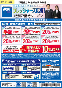 ![]() ( G倶楽部 紙面 ) ![]() ![]() ( AOKIチラシ 、 コナカチラシ ) ![]() (食堂パーティーチラシ) ※G倶楽部 2月号 全紙面(広告含) |